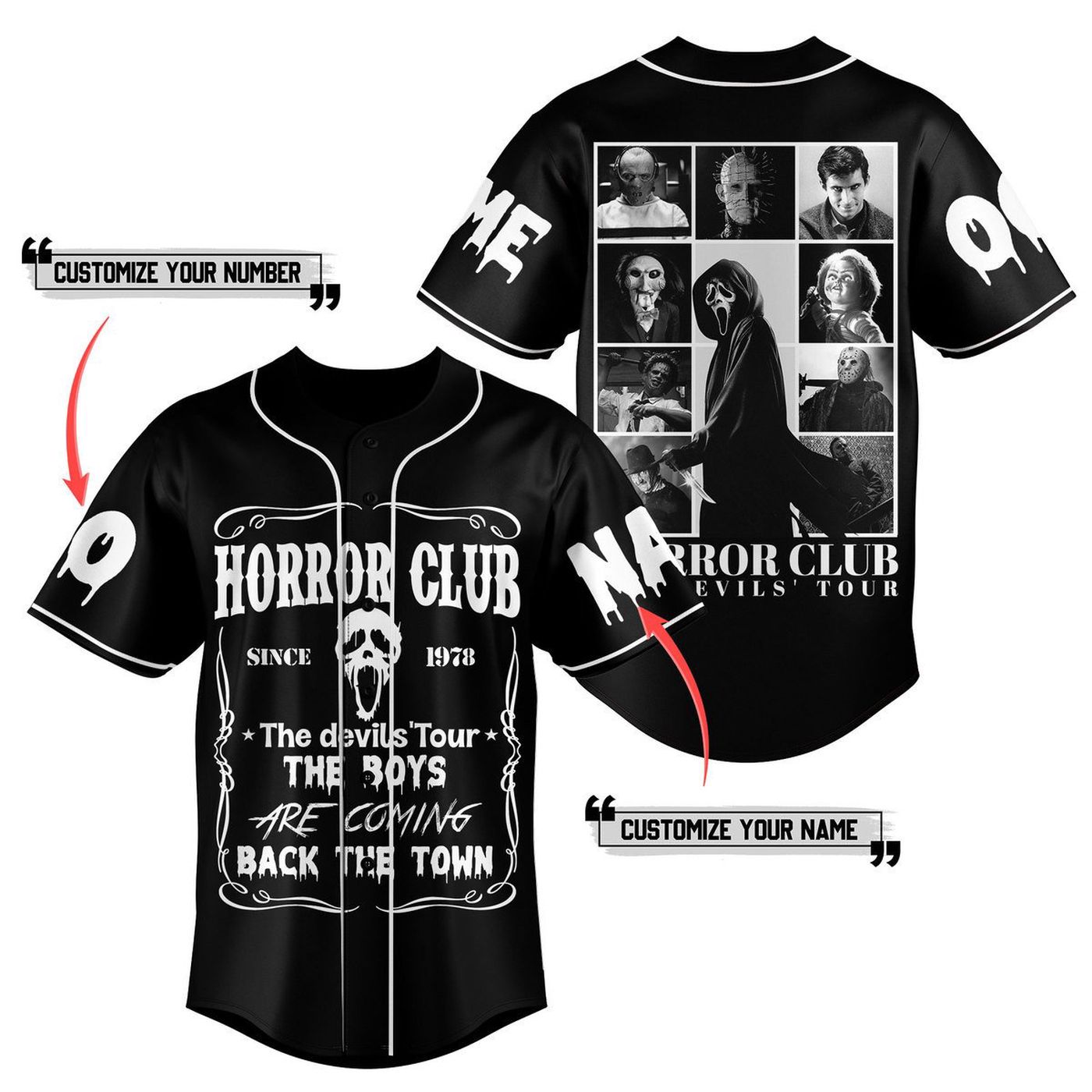 The Horror Club Baseball Jersey is a must-have for horror enthusiasts of all ages! Made with premium quality materials, this jersey offers comfort and durability. With its striking design featuring iconic horror movie elements, it is sure to turn heads wherever you go. Whether you’re a man, woman, or kid, this jersey is available in various sizes to ensure a perfect fit. Experience the thrill of being part of the Horror Club and showcase your passion for horror in style. Get ready to stand out from the crowd and make a statement with this unique baseball jersey. Don’t miss out on the opportunity to add this one-of-a-kind piece to your horror collection. Embrace your love for the macabre and order your Horror Club Baseball Jersey today!