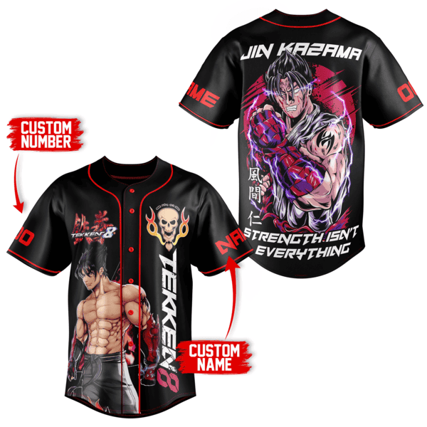 Introducing the Jin Kazama Baseball Jersey, a must-have for men, women, and kids who are die-hard fans of the legendary Tekken character! Made with premium quality materials, this jersey is designed to provide ultimate comfort and durability. Its sleek and stylish design showcases Jin Kazama’s iconic logo, making it a statement piece for any fan. The jersey’s breathable fabric ensures optimum ventilation during intense gaming sessions or outdoor activities. Whether you’re hitting the field or simply want to show off your love for Tekken, this jersey is the perfect choice. Join the ranks of true Kazama fans and embrace the power of Jin with this exclusive jersey. Unlock your inner fighter and stand out from the crowd with the Jin Kazama Baseball Jersey!